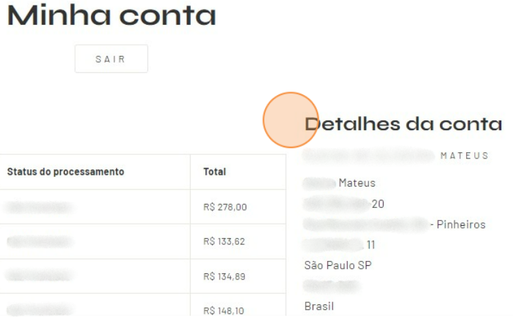 2. Em seguida, no canto direito da tela localize o menu "Detalhes da conta";